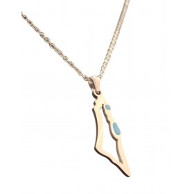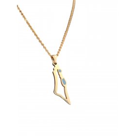 Pendant Necklace, Silhouette of Israel & Blue Stones for Seas Gold Stainless Steel$12.20 -