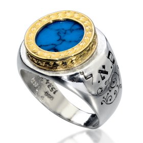 Silver Kabbalah Prosperity Blessing Ring with Turquoise Stone in Gold Setting - HaAri$403.17FREE delivery -