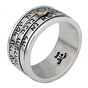 Silver Three-Band Spinner Mans Ring with Chrysoberyl Stone, Hebrew Prayers - HaAri$200.33FREE delivery -
