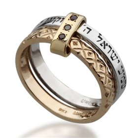 Silver and Gold Kabbalah Rings with Shema Yisrael and Black Diamonds - Ha'Ari$782.32FREE delivery -