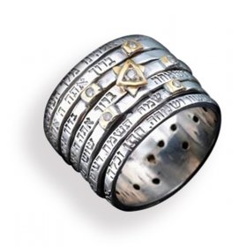 One of our most popular Kabbalah rings is the Ha’ari Spinner. Breathtaking creativity is expressed in the stunning designs - rotating bands on which are engraved the Seven Wedding Blessings, recited during the marriage ceremony. This ring is an eternal symbol of love and unity within individual expression.