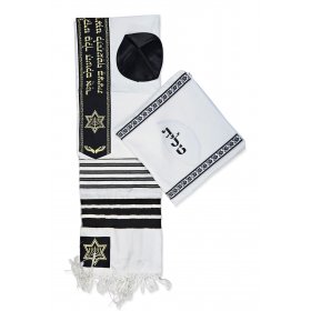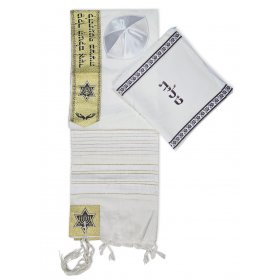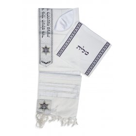 Most of our tallitot come with embroidery on that neckpiece. They usually also have a matching tallit bag and kippah making them the perfect gift.
