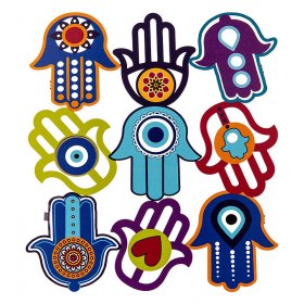 Colorful Wall Plaque with Cutout Variety of Decorative Hamsas - Dorit Judaica$51.83 -