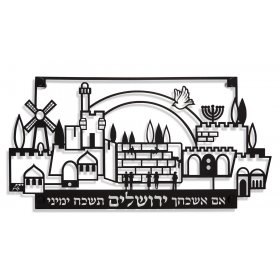 Large Cutout Jerusalem Wall Plaque with Hebrew Psalm Words, Black - Dorit Judaica$166.76 -