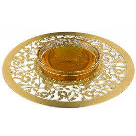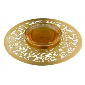 Gold Plated Honey Dish, Glass Bowl with Pomegranate Design - Dorit JudaicaDiameter: 6.0"$44.65 -
