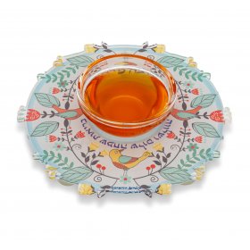 Raised Lucite Honey Dish, Colorful Flowers and Hebrew Blessing Words - Dorit Judaica$35.81 -