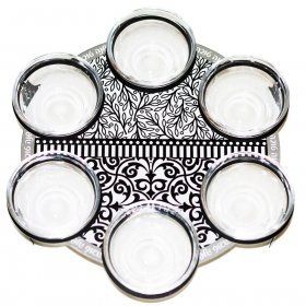 Rosh Hashanah Special Foods Simainim Dish, Black & White Leaf Design - Dorit Judaica$58.20 -