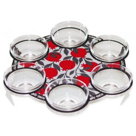 Rosh Hashanah Special Foods Simanim Tray, Red Pomegranate Design - Dorit Judaica$58.20 -