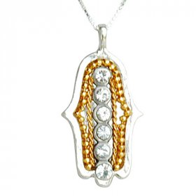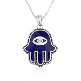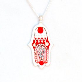 The Hamsa is an ancient Oriental motif, featuring an open palm and outstretched fingers. It is reputed to bring good luck, prosperity and protection from the Evil Eye. A Hamsa necklace is reckoned to attract good forces and neutralize negative energies that come from the Evil Eye. So, if you have a taste for mysticism and enjoy jewelry with a spiritual dimension, wear and enjoy a Canaan-Online Hamsa necklace.