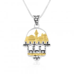 Necklace of Sterling Silver with Hamsa Pendant and Gold Plated Jerusalem Images$64.91 - $71.63 -