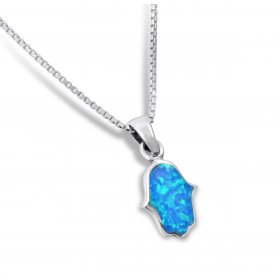 Opal Hamsa Necklace Light Blue Pendant in 925 Sterling Silver$21.38 - $28.94 -