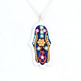 Our leading Hamsa necklace artist is Ester Shahaf, an incredibly gifted Israeli craftsman. She brings to her spectacular Hamsa designs, vibrant colors and the meticulous hand application of beads, crystals and decorative metals.