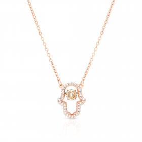 Sterling Silver Necklace, Rose Gold Plated – Hamsa Hand Pendant with Glittering Zircons$55.96 -