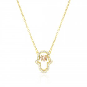 Sterling Silver Necklace, Yellow Gold Plated – Hamsa Hand Pendant with Zircons$55.96 -