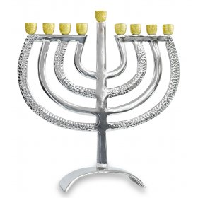 Glittering Gold Cups on Silver Hanukkah Menorah with Hammered Branches - 12.5 InchesHeight: 12.5"$111.54 -