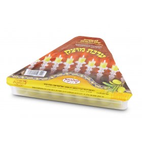 Now, scroll through the selection of gorgeous colorful candles. They are all handmade in Safed, the northern town of Israel that is famous for its deep mystical roots. There, in its winding footpaths, is the company's studio and workshop where these stunning dripless candles are designed and produced. Choose the candle that speaks to your heart pure white, sky blue stripes, candy colors, colorful combinations of reds and greens. Whichever color combination you fancy, you will find it in the Safed collection. Each box holds enough candles for use throughout the Festival and they burn for about an hour so there is time to revel in the joyous colors.