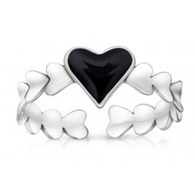 Adjustable Ring of Hearts with Black Heart in Center - Sterling Silver$55.96 -