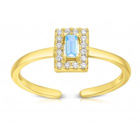 Ring of Yellow Gold Plated Sterling Silver, Small Zircons Frame Blue Zircon in Center$55.96 -