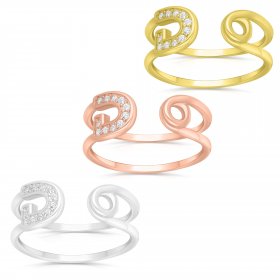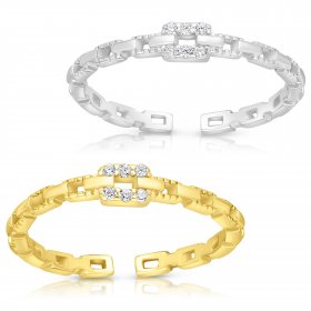 Sterling Silver Adjustable Ring with Zircons, Links Design - Choose Gold or Silver$55.96 -