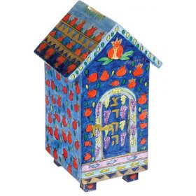Blue House-Shaped Wood Tzedakah Charity Box, Pomegranates - Yair EmanuelHeight: 7"$64.22 -