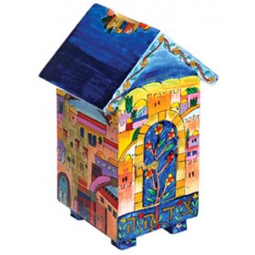 Colorful House Shaped Wood Tzedakah Charity Box, Jerusalem - Yair EmanuelHeight: 7"$64.22 -