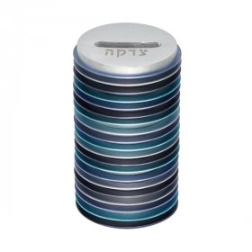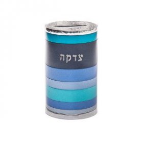 Round Charity Tzedakah Box with Stacked Discs, Shades of Blue - Yair Emanuel$67.16 -