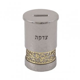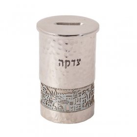 Decorative Charity Tzedakah Box with Biblical Verse, Silver - Yair EmanuelHeight: 4.5"$48.13 -
