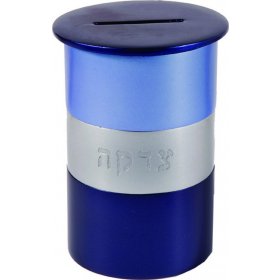 Cylinder Charity Tzedakah Box with Horizontal Bands, Blue - Yair Emanuel$50.36 -