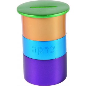 Round Anodized Aluminum Charity Tzedakah Box, Colorful - Yair EmanuelHeight: 4"$51.48 -