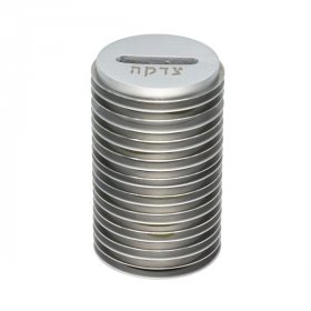 Round Anodized Aluminum Charity Tzedakah Box, Silver - Yair EmanuelHeight: 4"$51.48 -