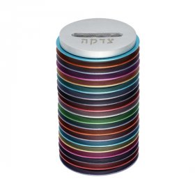 Round Charity Tzedakah Box with Stacked Discs, Multicolor - Yair Emanuel$67.16 -