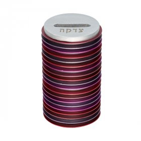 Round Charity Tzedakah Box with Stacked Discs, Violet and Maroon Shades - Yair Emanuel$67.16 -