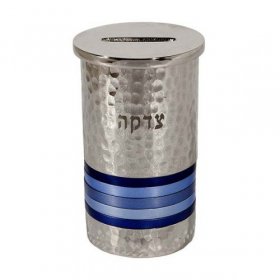 Silver Hammered Nickel Round Charity Box with Blue Rings - Yair Emanuel$54.13 -