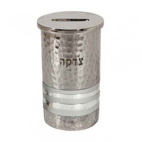Silver Hammered Nickel Round Charity Box with Silver Rings - Yair Emanuel$54.13 -