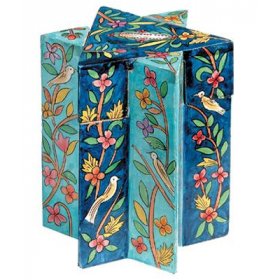 Star of David Wood Charity Tzedakah Box, Blue Floral Bird Design - Yair EmanuelHeight: 5"$59.32 -