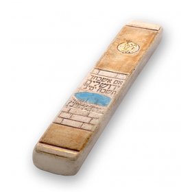 Handmade Ceramic Mezuzah Case with The Wall, Jerusalem and Psalm Words - Art in Clay$100.39 -