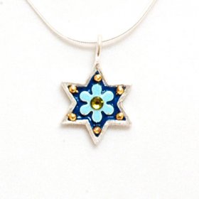 Magen David Necklace with Blue Flower - Shahaf$64.22 -