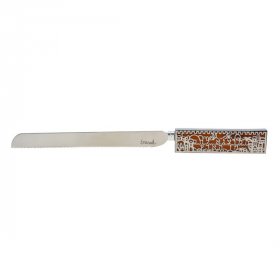 Challah Knife with Wood Handle, Jerusalem Images and Blessing Words - Yair Emanuel$54.84 -