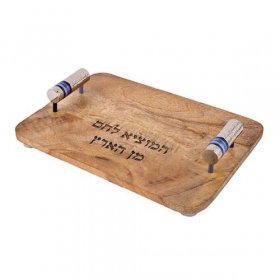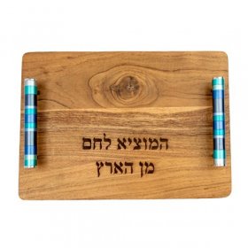 Grained Wood Challah Board with Blessing Words, Blue Handles - Yair Emanuel$117.52 -