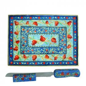 Hand Painted Challah Board and Knife Set, Pomegranates - Yair Emanuel$38.93 - $194.93 -