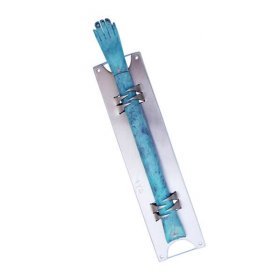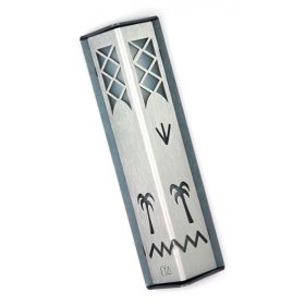 Angular Shiny Silver Aluminum Mezuzah Case - Palm Tree Motif by Shraga LandesmanSize: 5.1"$73.18 -