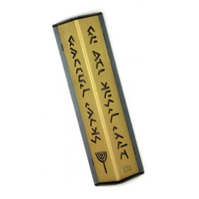 Angular Shiny Gold Aluminum Mezuzah Case - Mah Tovu by Shraga LandesmanSize: 5.1"$73.18 -