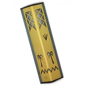 Angular Shiny Gold Aluminum Mezuzah Case - Palm Tree Motif by Shraga LandesmanSize: 5.1"$73.18 -