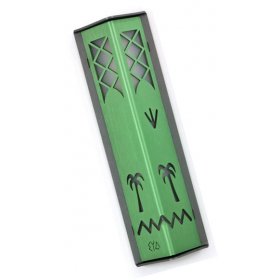 Angular Shiny Green Aluminum Mezuzah Case - Palm Tree Motif by Shraga LandesmanSize: 5.1"$73.18 -