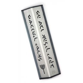 Angular Shiny Silver Aluminum Mezuzah Case - Mah Tovu by Shraga LandesmanSize: 5.1"$73.18 -
