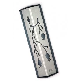 Angular Shiny Silver Aluminum Mezuzah Case - Pomegranate Motif by Shraga LandesmanSize: 5.1"$73.18 -