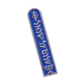 Blue Aluminum Mezuzah Case Jewish Symbols - Shalom Al Yisrael by Shraga LandesmanSize: 4"$65.35 -