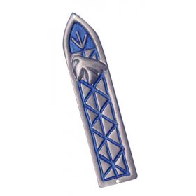 Blue Mezuzah Case Dove, Shin and Criss-Cross Design - Aluminum by Shraga LandesmanSize: 4"$65.35 -