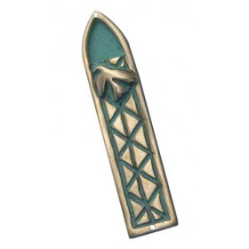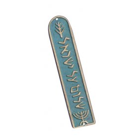 Turquoise Brass Mezuzah Case Jewish Symbols - Shalom Al Yisrael by Shraga LandesmanSize: 4"$69.85 -
