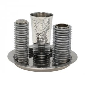 Contemporary 4-Piece Havdalah Set, Gray Stacked Discs - Yair Emanuel$165.64 -